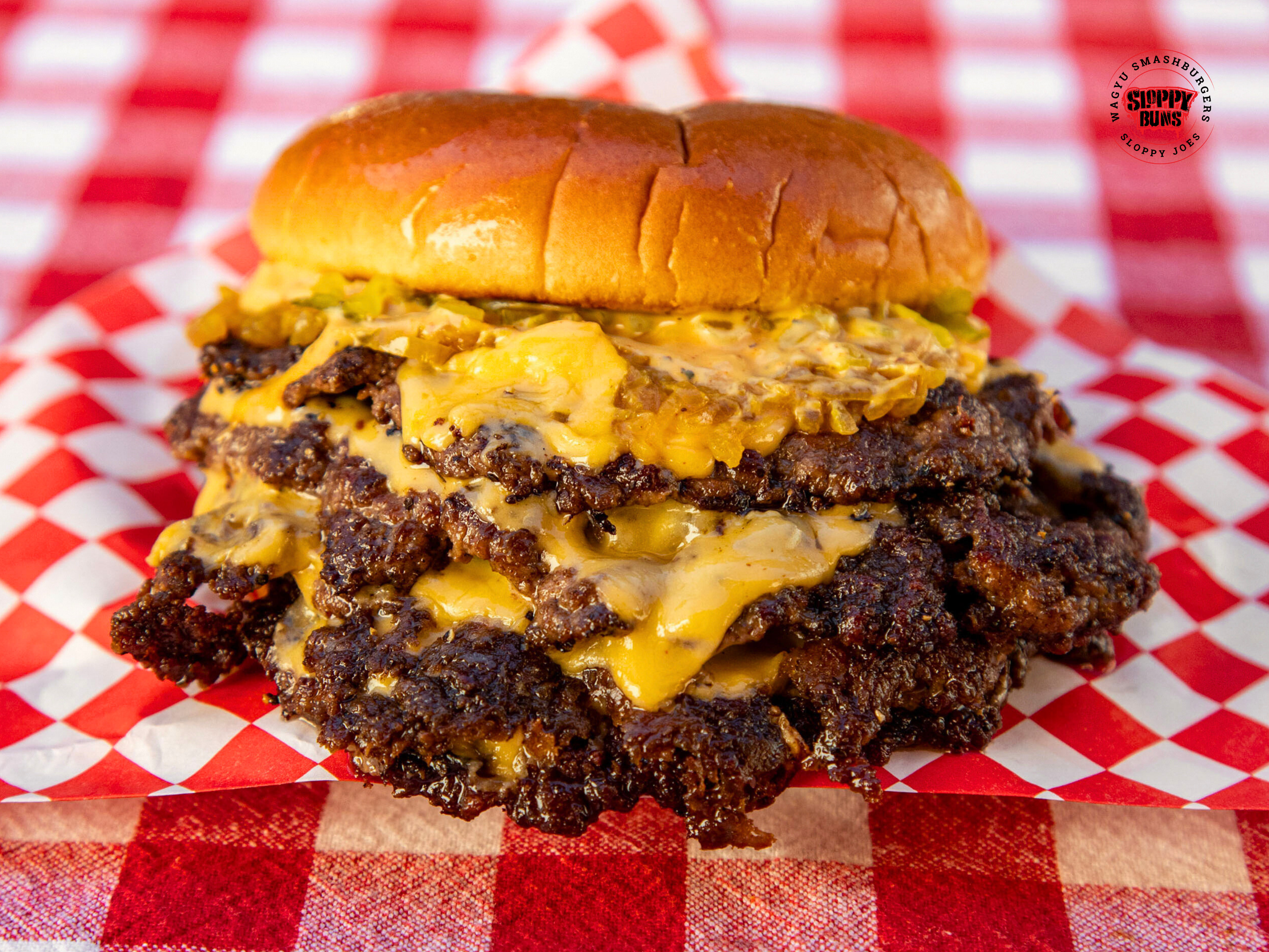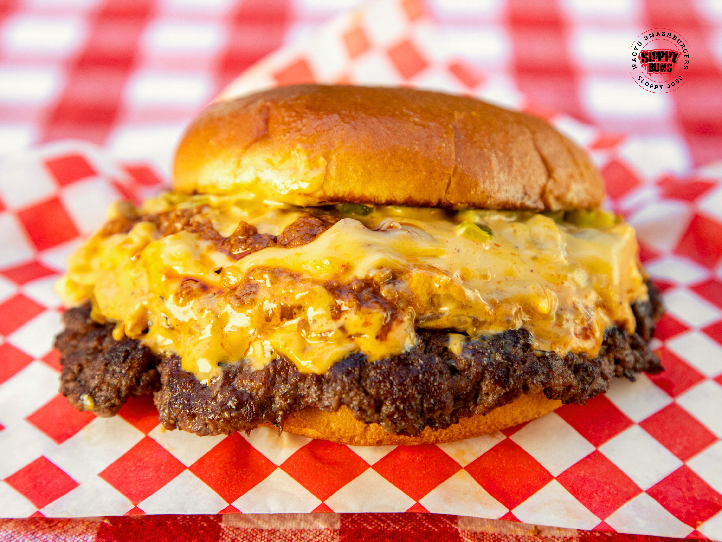 Smashed Australian Wagyu Patties with melted American Cheese on Buttered & Toasted Buns. Comes with Sloppy Sauce, sliced Mustard-Grilled Onions, freshly diced White Onions & Dill Relish