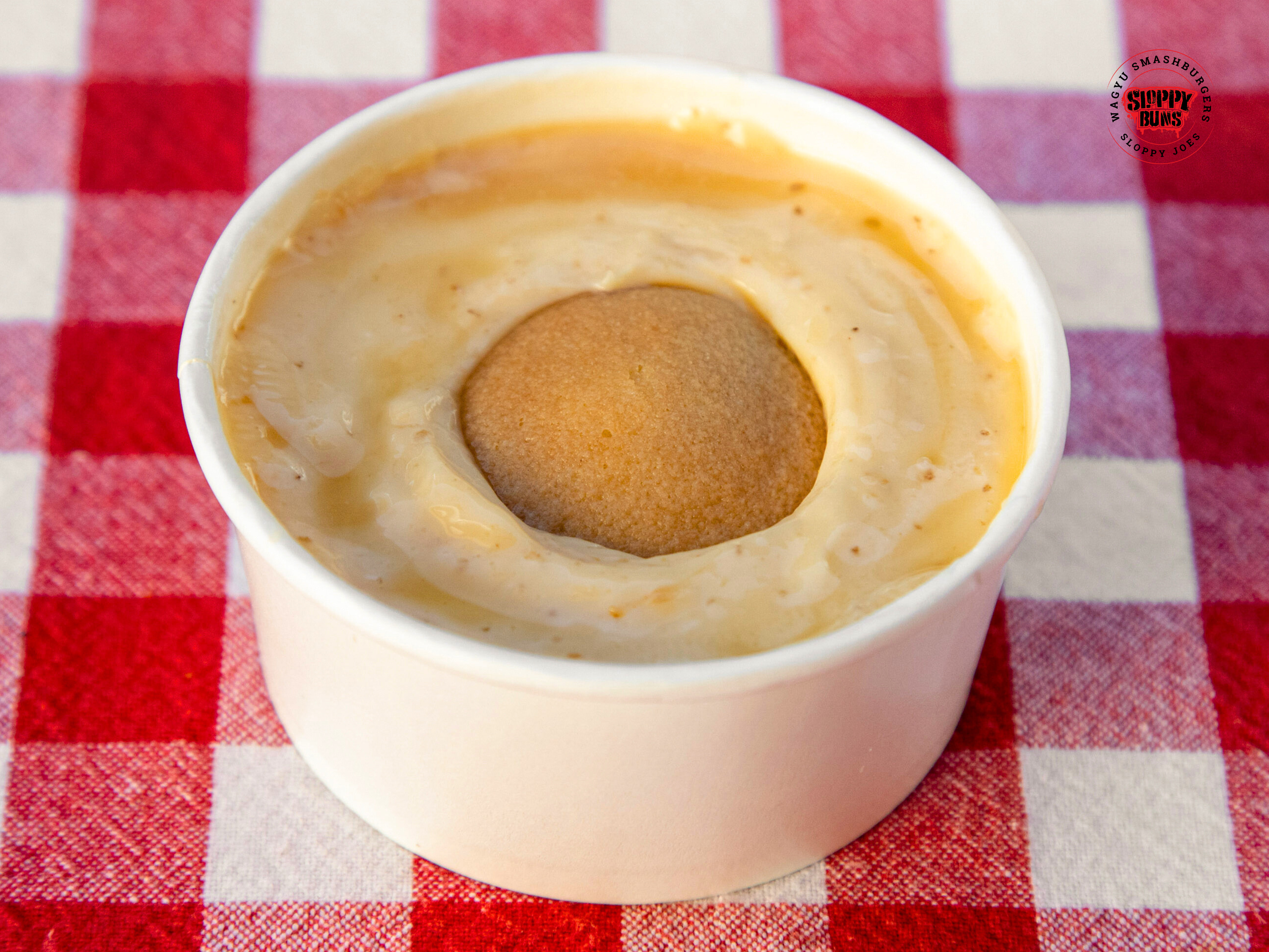 9oz Australian Wagyu Patty stuffed with melted American Cheese on Buttered & Toasted Buns. Comes with Sloppy Sauce, sliced Mustard-Grilled Onions, freshly diced White Onions & Dill Relish. Topped with 2 slices of American Cheese