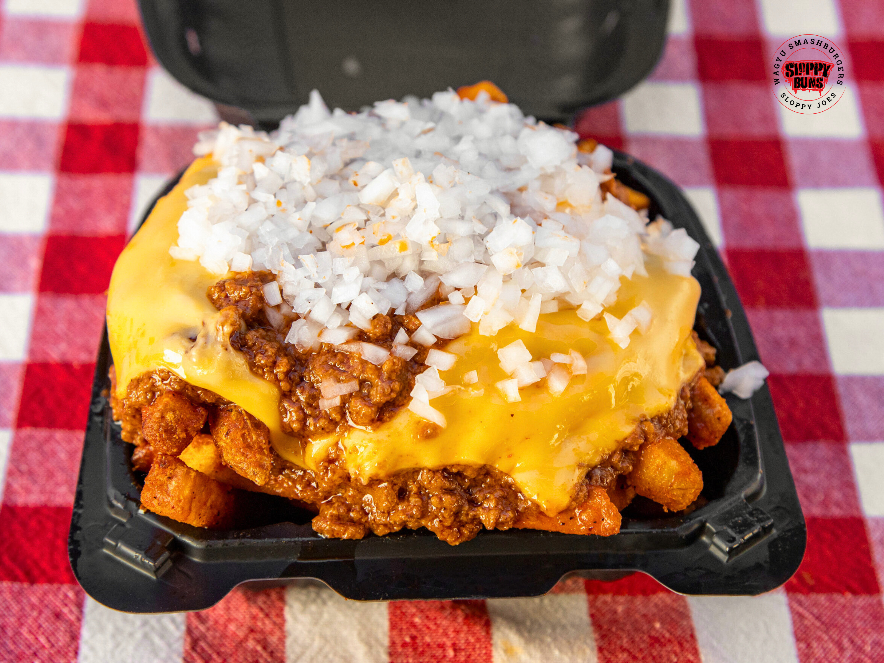 Tallow Fries topped with our signature Australian Wagyu Beef slow-cooked for 8hrs in a rich, savory tomato-based sauce with melted American Cheese. Finished with freshly diced White Onions