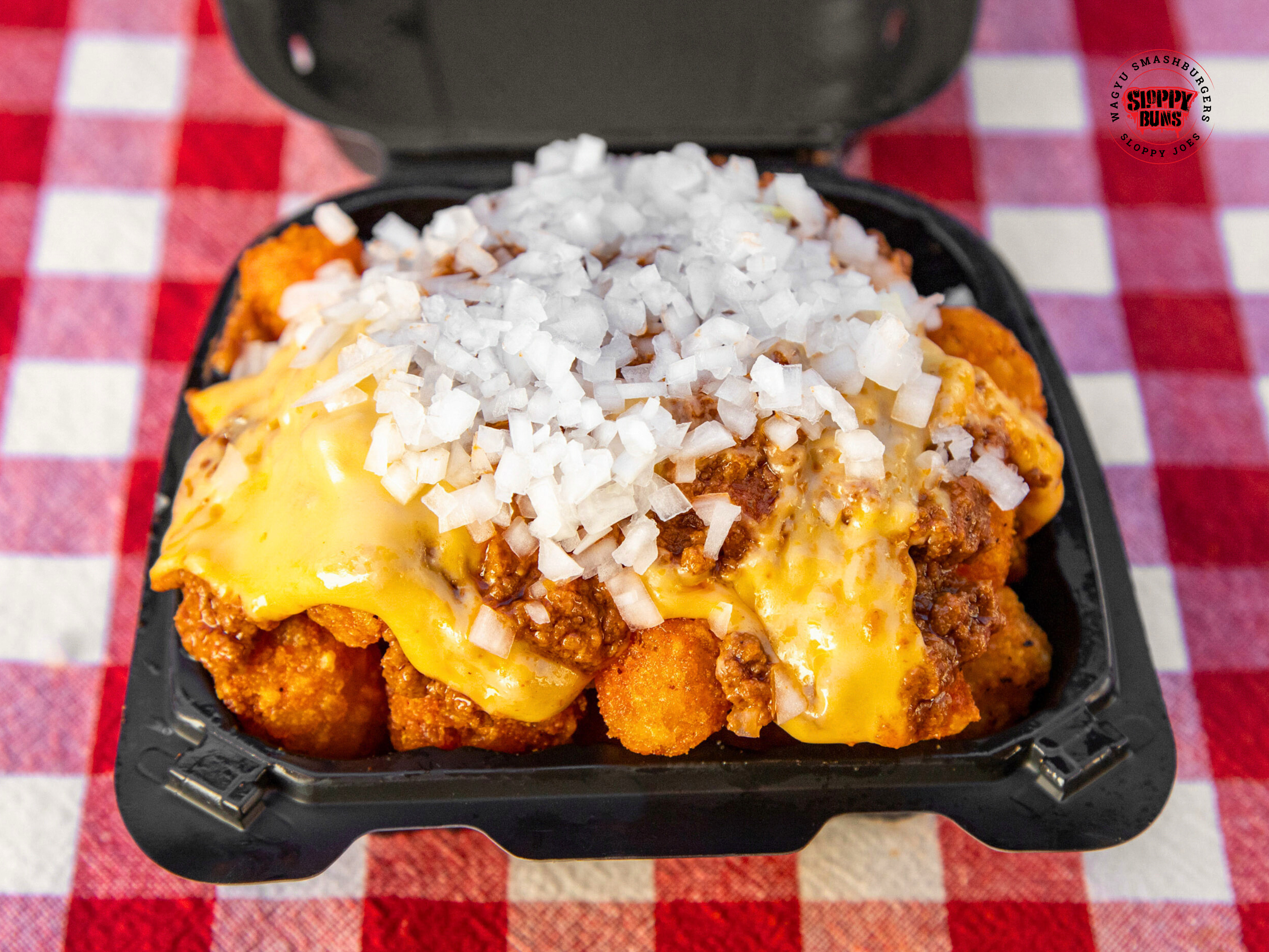 Tallow Tots topped with our signature Australian Wagyu Beef slow-cooked for 8hrs in a rich, savory tomato-based sauce with melted American Cheese. Finished with freshly diced White Onions