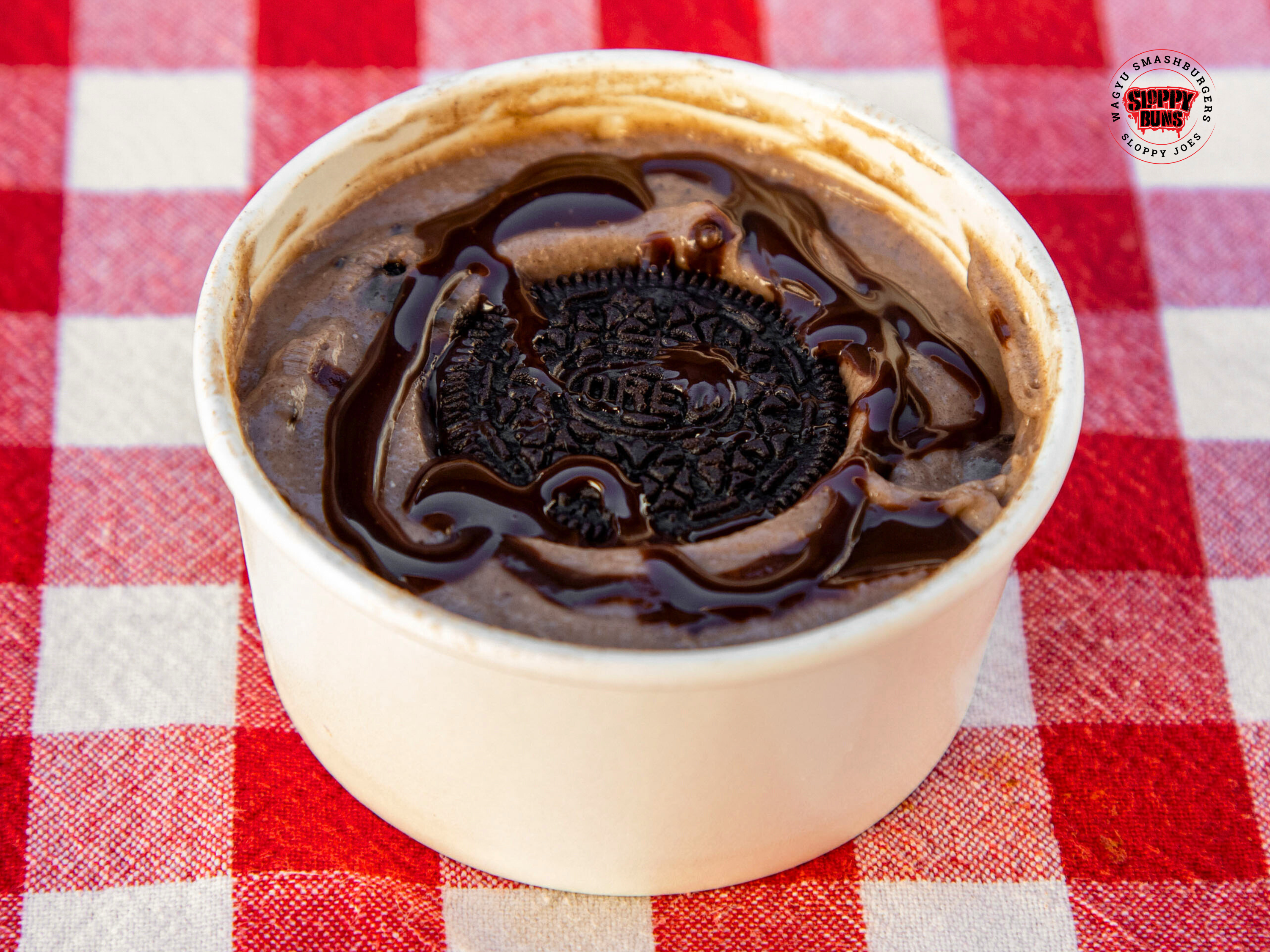 Vanilla Pudding with crumbled Oreos and Chocolate Drizzle